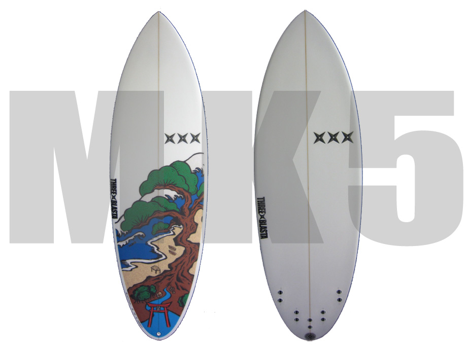 - 短いボードは小波用という考えはもう古いです。MK5は短くてもオールラウンドに使用できるミニボードです。軸で使用のパフォーマンスボードよりも中上級者で、4〜5インチ短くオーダーしてみてください。ノーズエリアのボリュームがあり、テイクオフがスーパー早いです。一方テールエリアを絞ることにより、波のフェイスにレールが噛み付きやすく、サイズが上がってもテールがルースにスライドしません。ボトムではしっかりホールドされ、バーティカルなトップアクションが可能なボードとなりました。オールラウンドに使用できるテイクオフの早い短いボードが完成しました。