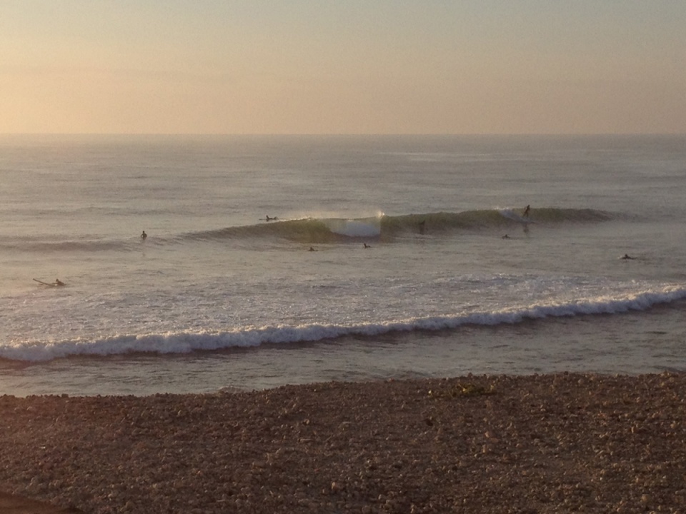 サイズは上がってなくて、物足りなかった。昨日の夕方の方が波あったよ。